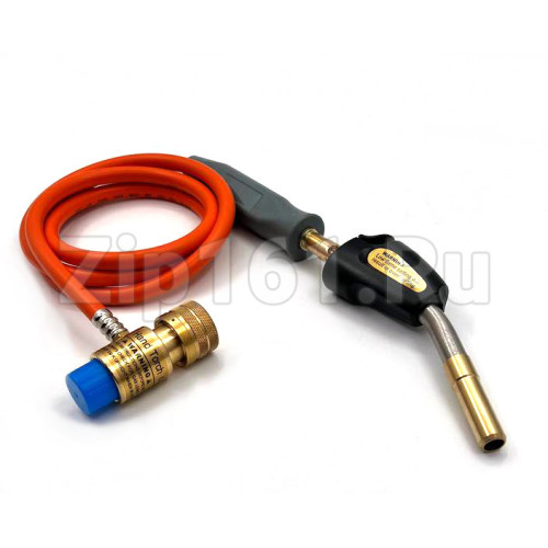 Горелка ; ;используется при паечных работах в процессе монтажа и ремонта холодильного оборудования. Горелка со шлангом и пьезоподжигом JH-3SW имеет очень удобную особенность – она оборудована пьезоподжигом, серьезно облегчающим работу. Данная горелка представляет собой ремонтное устройство, поэтому, чтобы не допустить расплавление блока пьезоподжига, работать необходимо с перерывами, чтобы сопло успевало остыть. Горелка проста и надежна, ей можно легко спаивать как особо тонкие трубки, так и полудюймовые труды. Элементы горелки не боятся перегрева, так что работать она способна непрерывно, пока в баллоне будет оставаться газ. Длина шланга: 1,5 м.Внутренний диаметр сопла 9мм.Общая длина гусака 110 мм. Подключается к баллону с MAPP газом, резьба подключения - ; ;US (дюйм).