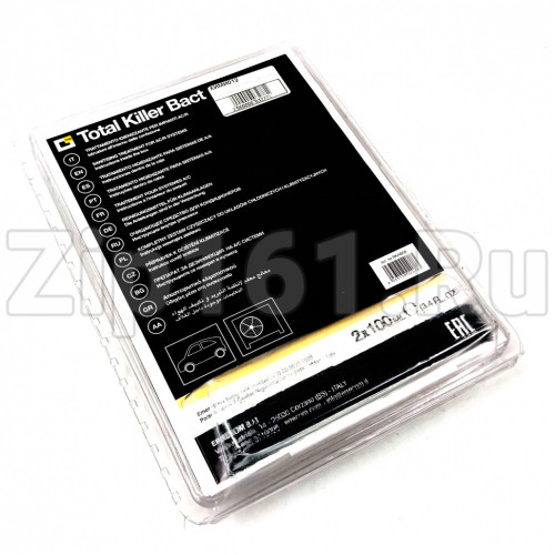 Набор очищающих средств для кондиционеров Total Killer Bact Лимон Total Killer Bact ;- набор средств для комплексной обработки испарителя и помещения, который оставляет приятный аромат чистоты. 100 Мл (3.4 Fl.oz.) Гигиенического Средства Достаточно Для: Автомобилей Типа Compact - Sports - Station Wagon Состав упаковки: Баллон Killer Bact Foam – пенный очиститель для испарителя. 100 МлБаллон Zone Killer Bact – очиститель для помещений.100 МлЗонд 60см. Краткая инструкция по использованию: Обработку салона автомобиля следует начать с применения пены Killer Bact Foam, которая наносится непосредственно на испаритель и воздуховоды с помощью трубки. Пена мгновенно уничто