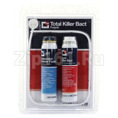 Набор очищающих средств для кондиционеров Total Killer Bact Клубника Total Killer Bact ;- набор средств для комплексной обработки испарителя и помещения, который оставляет приятный аромат чистоты. Состав упаковки: Баллон Killer Bact Foam – пенный очиститель для испарителя. 100 МлБаллон Zone Killer Bact – очиститель для помещений.100 МлЗонд 60см. Краткая инструкция по использованию: Обработку салона автомобиля следует начать с применения пены Killer Bact Foam, которая наносится непосредственно на испаритель и воздуховоды с помощью трубки. Пена мгновенно уничтожает накопившиеся бактерии и микроорганизмы, гарантируя стойкость достигнутого эффекта. По окончании обработки рекомендуется