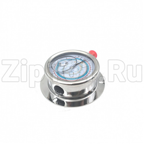 Область применения, описание компонента: Манометр с глицерином BCJH-NG-63 предназначен для измерения давления в пределах от -1 Бар до 34 Бар. Манометр с глицерином BCJH-NG-63, это прибор с механизмом измерения давления в виде трубчатой пружины, диаметр шкалы 63 мм, присоединительный латунный штуцер имеет резьбу М1/4" SAE. Герметичный корпус манометра BCJH-NG-63 изготовлен из нержавеющей стали, имеется "юбка" с тремя крепёжными отверстиями, для демпфирования колебаний измерительного механизма в корпус залит глицерин. На шкалу манометра нанесены температурные шкалы R22, R134a, R404A, R407C. 25Манометры с глицерином могут использоваться при температуре от -5° С до + 120° C, при температуре ниже -5° С глицерин загустевает и при работе установки манометры могут выйти из строя. Комплектация: Манометр BCJH-NG-63