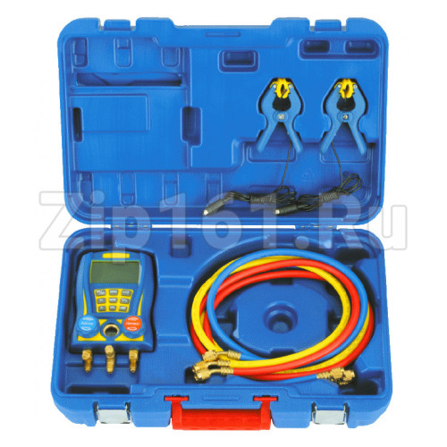 Многофункциональный манометр DSZH WK-6889-L представляет собой двух вентильный цифровой манометрический моно коллектор с комплектом из трех зарядных шлангов и смотровым стеклом, Цифровая манометрическая станция WK-6889-L применяется для измерения избыточного давления в холодильных системах, работающих на любых видах фреонов, устройство с металлической диафрагмой. Питание 1.5V AA X 4. Единицы измерения температуры °F . Диапазон измерения: -101 Kpa~0Kpa, 0 MPa~6 MPa.