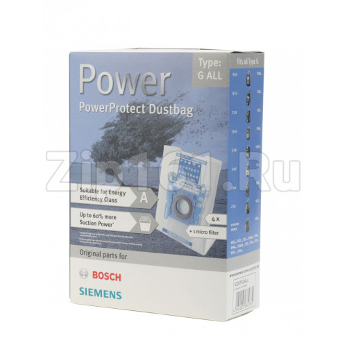 Мешки-пылесборники; тип G, 4 шт 00576863Новый мешок-пылесборник PowerProtect позволяет обеспечить высокую мощность всасывания, когда пылесборник наполнен, даже у приборов с минимальной мощностьюНовейшая технология нетканного материала для долгого срока службыВнутренняя ячеистая структура мешка позволяет улучшить качество фильтрацииМешки для пылесоса подходят для всех моделей современных пылесосов : BSGL5.. (GL-50 Free ;e), BGL45.., BGL8.. (In ;genius ProSilence и Home Professional), BGB45.. (Maxx ;x), BGL4.. (GL-40), BGL35.. (MoveOn), BGL3.., BSGL3.. (GL-30), BGL2.. (GL-20), BSG6.. (Logo), BSG4.., BSG7.., BSGL2.., BSA.., BSD.., BSF.., BBS.., BSC..; за исключением серий BSG8.., BSN.., BSG1..В упаковке: 4 мешка-пылесборника с клапаном-задвижкой, 1 сменный микрофильтрМощность всасывания при заполнении мешка до 60% выше, чем у предыдущих моделей мешков-пылесборниковМаксимальная гигиеничность: фильтрация до 99,9%