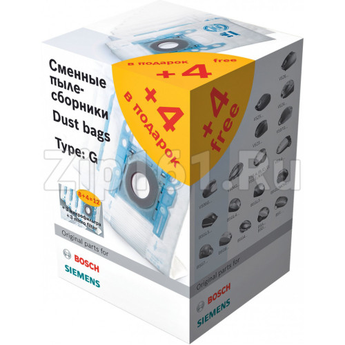 Мешок для пылесоса 12шт 00577755Сменные мешки-пылесборники для пылесоса (тип G)Трёхслойный синтетический флисовый материал мешка для пылесоса обеспечивает в высшей степени эффективную фильтрациюГигиенический клапан-задвижка позволяет утилизировать пылесборник максимально чисто и без усилийВ упаковке: 12 мешков-пылесборников Typ G и 3 сменных микрофильтраПодходят для пылесосов серий BSGL5.., BGL45.., BGL8.., BGB45.., BSGL2.., BSGL3.., BSGL4.., BGL4.., BGL3.., BGL2.., BSG4.., BSG6.., BSG7.., BSA.., BSB.., BSC.., BSD.., BBS.., BSF.., VS04.., VS06.., VS5.., VSZ3.., VSZ4..Соответствует аксессуару BBZ123FGI (мешок для пылесоса )Проверенный и рекомендованный производителем аксессуарТакже доступен в упаковке 8 шт. - арт. 00575860 Если вы не уверены в выборе, уточняйте через вопрос совместимость с вашей моделью!
