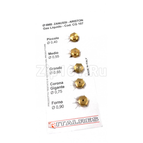 Набор жиклеров Ariston-Zanussi-Electrolux на балонный газ (D=0.40, D=0.55, D=0.65, D=0.75, D=0.90)