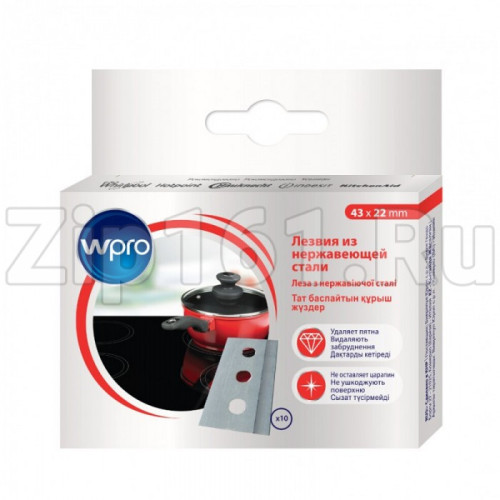 Лезвия из нержавеющей стали Indesit C00384869 Комплект из 10 запасных лезвий к скребку для стеклокерамики Скребок Wpro легко удаляет даже застарелые пригоревшие остатки, не царапая при этом варочную поверхность (подходит для использования на стеклокерамической, индукционной и стеклянно