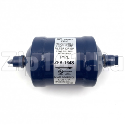 Фильтр-осушитель реверсивный SFK-164S 1/2 пайка Состоит из мелких сферических частиц высокопрочного спеченного десикантного ядра, отсутствие ударов и трения во время работы, за счет этого снижается износ осушителя. Способность к нейтрализации загрязняющих веществ, таких как влага и кислота. Плотность фильтра: 20 микрон. Благодаря конструкции на фильтре минимальное падение давления, что позволяет системе работать более энергоэффективно. Антикоррозийная эпоксидная порошковая краска, испытывается на солевое опрыскивание выше 500 часов. Для разных типов фреона R12, R134a, R22, R404A, R407C, R410A, R500, R502, R507. Максимальное рабочее давление 4.7 Mpa/680Psig по сертификации UL и CE.